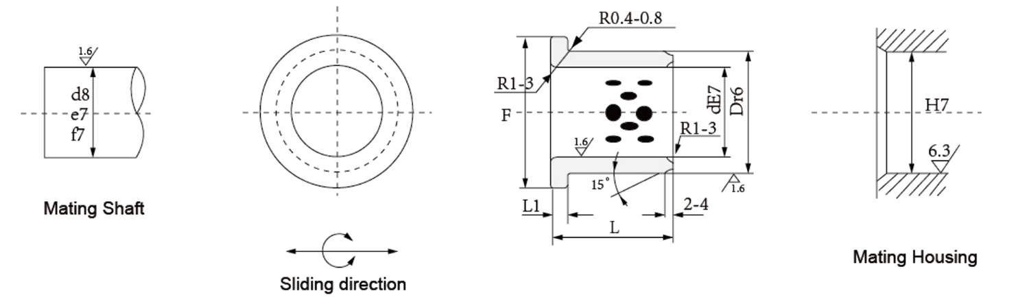 | JDB-1 | اساساً محصولات عمومی مناسب برای شرایط مختلف از جمله دمای بالا یا پایین، با روغن یا روانکاری بدون روغن. یا حتی در آب با ماتریس ساخته شده از برنج با استحکام بالا. سختی آن دو برابر می شود که بوش های معمولی برنزی و عملکرد سایش به میزان زیادی بهبود می یابد، بنابراین برای دستگاه های کنتیکاستر، سنگ زنی قابل استفاده است. مبدل های صنعت متالورژی همچنین میتوان از آن در ماشینهای تزریق پلاستیک، در سوئیچ اتوماتیک برق با فشار بالا، در بخشهای لوفینگ و پشتیبانی ماشینهای ساختمانی استفاده کرد. ساپورت دروازه هیدرولیک. پروژه پیلی، چرخ های محرک پروژه کنترل آب و تونل خشک کن ماشین آلات کاغذ. قطعات کشویی قالب خودکار برای کشتیهایی که از ماه خارج میشوند و غیره |